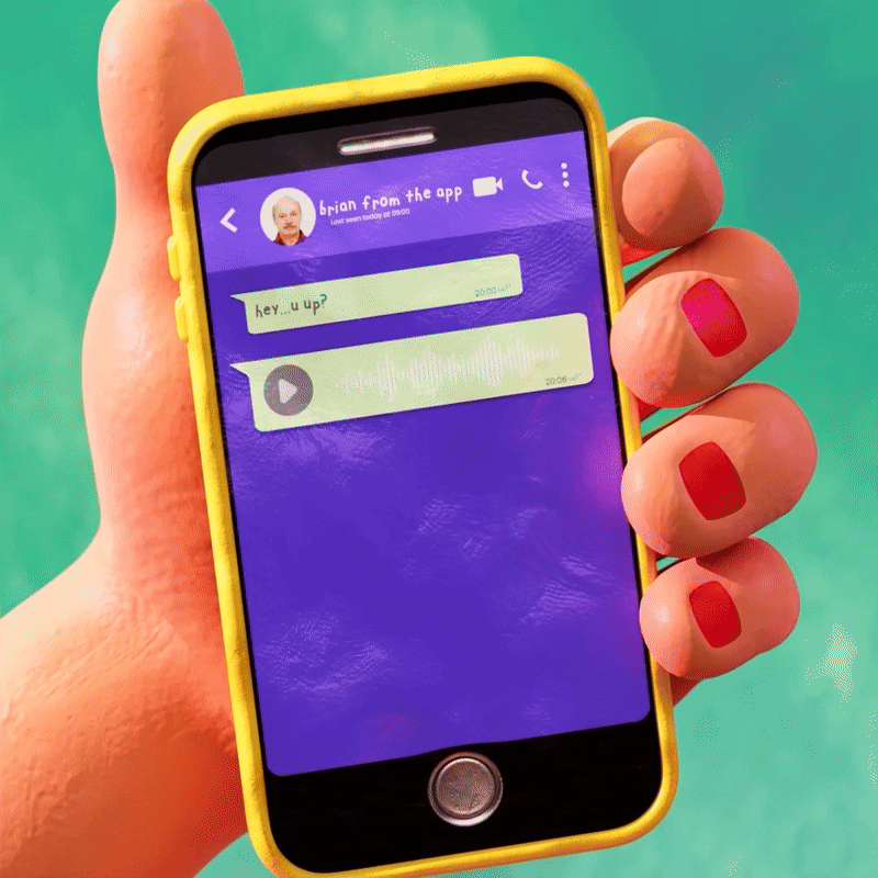 Christa enjoys reactions to the ambiguity of her approach; that people question whether it’s real or not. Despite being digital, everything looks slightly... 𝘩𝘢𝘯𝘥𝘭𝘦𝘥. Hugely inspired by stop motion, she was excited to find she could recreate that “imperfect”, tactile look digitally by moulding plasticine, adding finger prints, taking photographs, then scanning them in and wrapping them on digital 3D objects. She also sculpts characters in VR using Meta Quest and Adobe Medium, a process she describes as “much more like drawing: instinctive, physical and forgiving.” The goal always has been to use a hybrid approach and bring the “physical messiness” back into digital work.