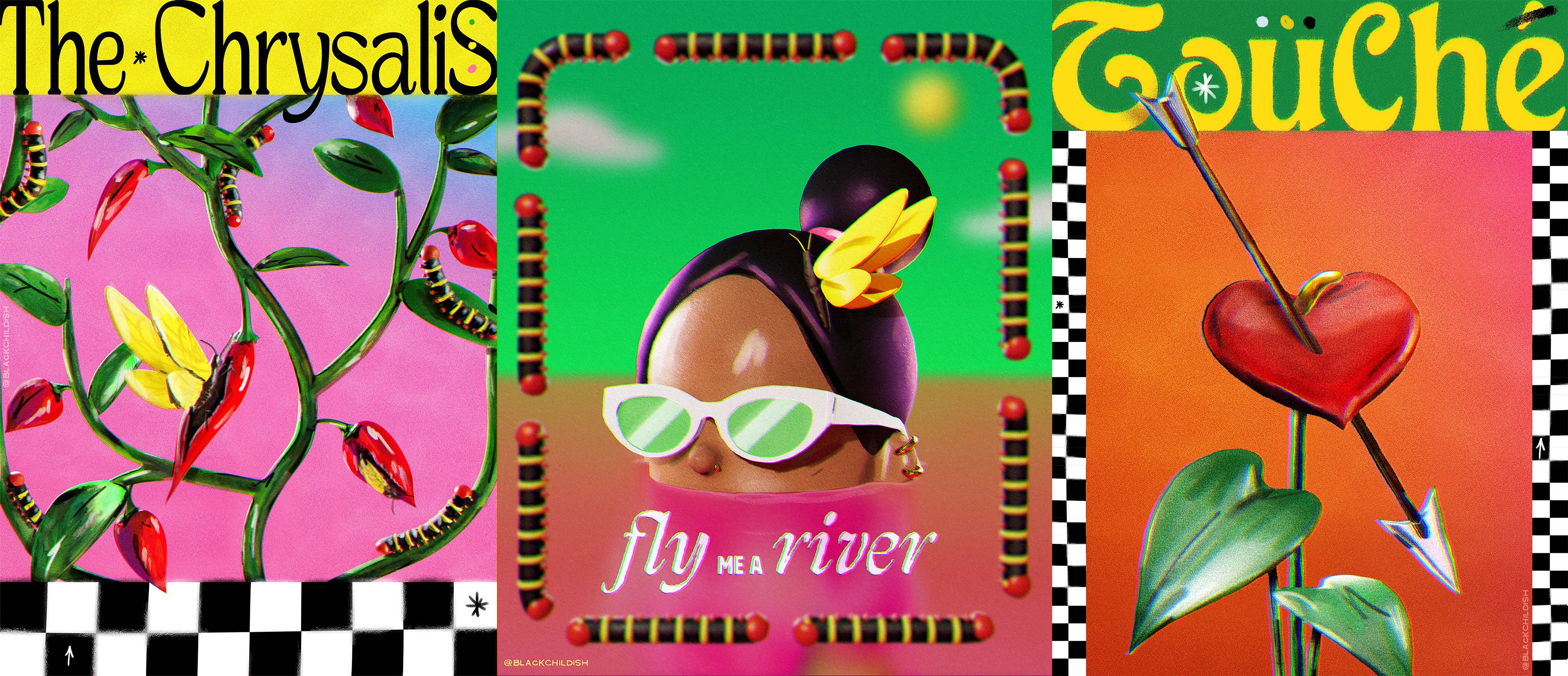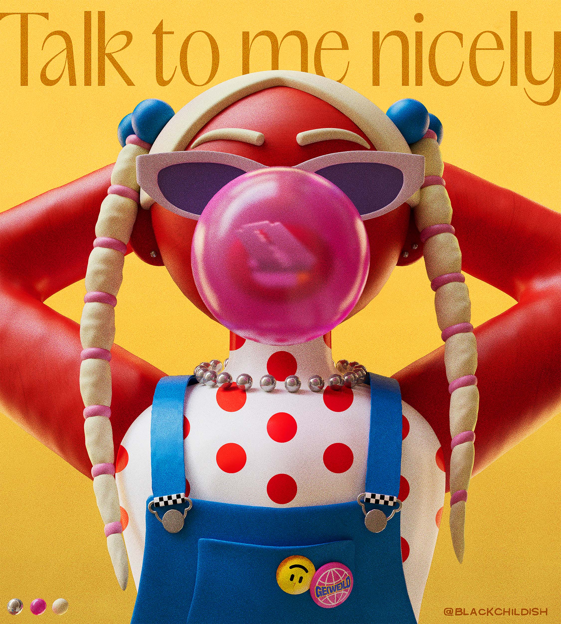 Mickaël Mehala aka Black Childish is a Martinican illustrator based in Amsterdam. With his unique practise of playing and integrating 2D with 3D, whether that’s featured on screens or murals, Black Childish always aspires to create work that is fun, bold and expressive. Drawing inspiration from his rich cultural heritage, as well as music and pop culture, Black Childish’s work features a colourful and playful side, where his characters transform into visual poetry that can be humorous or ethereal. As an artist that likes to explore techniques to evoke versatile textures and styles, Black Childish pushes the boundaries of what constitutes a 3D artist.