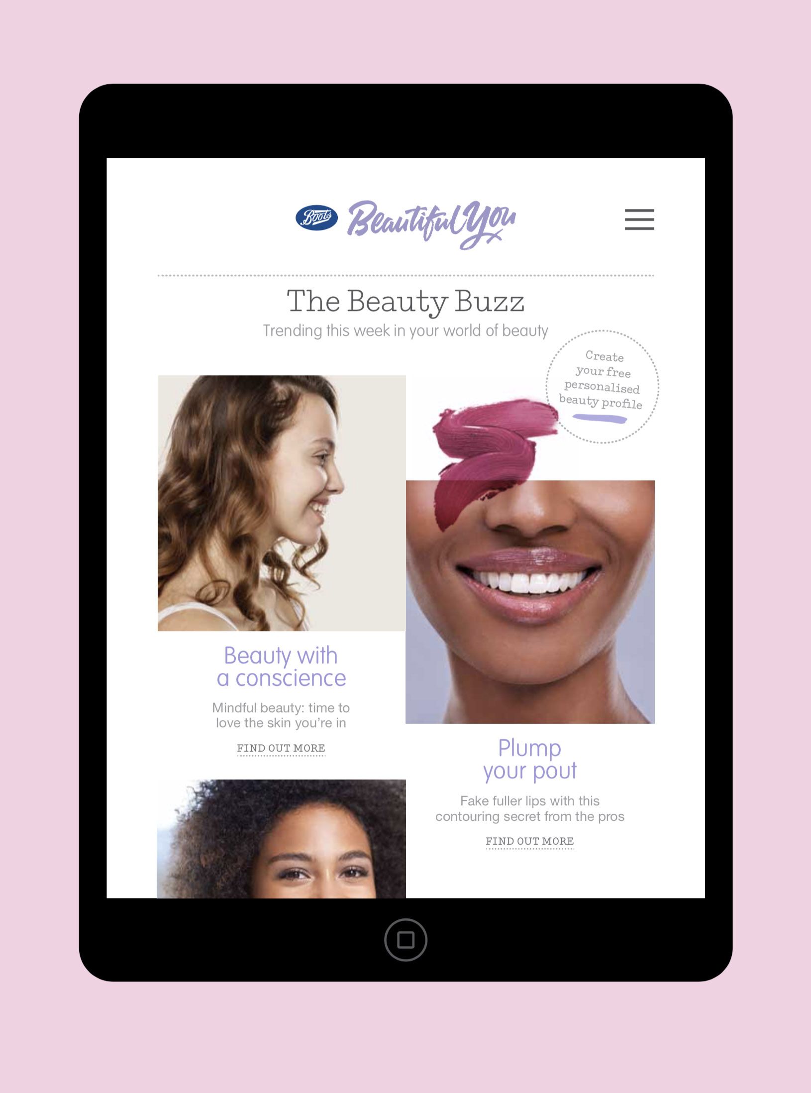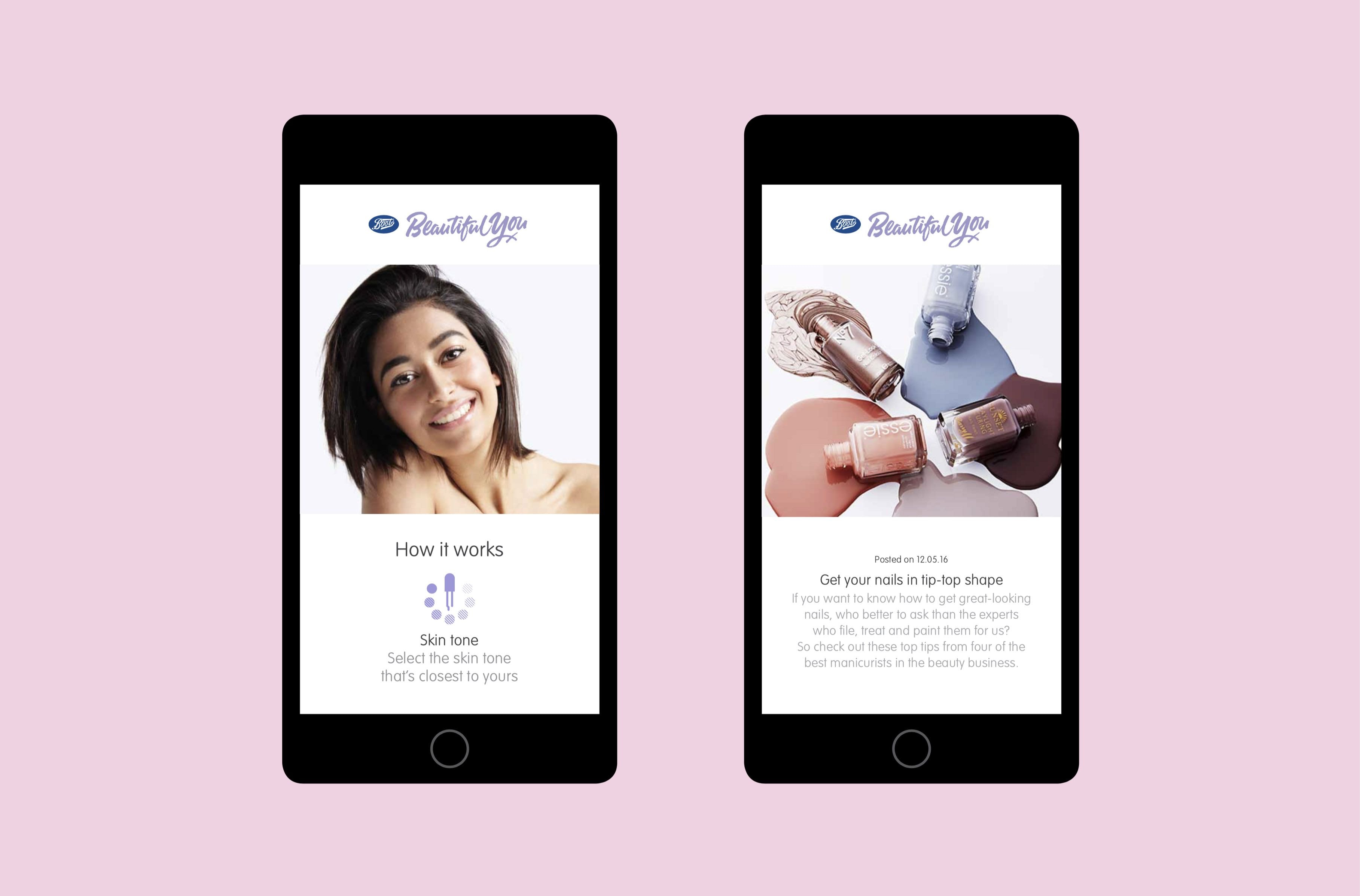 Beautiful You is a free and impartial beauty service from Boots that builds on their years of research and experience. Boots position themselves as “feel good specialists” and their mission was to create a brand for Beautiful You that reflected their wanting to make people healthier and happier, appealing to a younger beauty conscious audience without alienating Boots’ wider customer base.