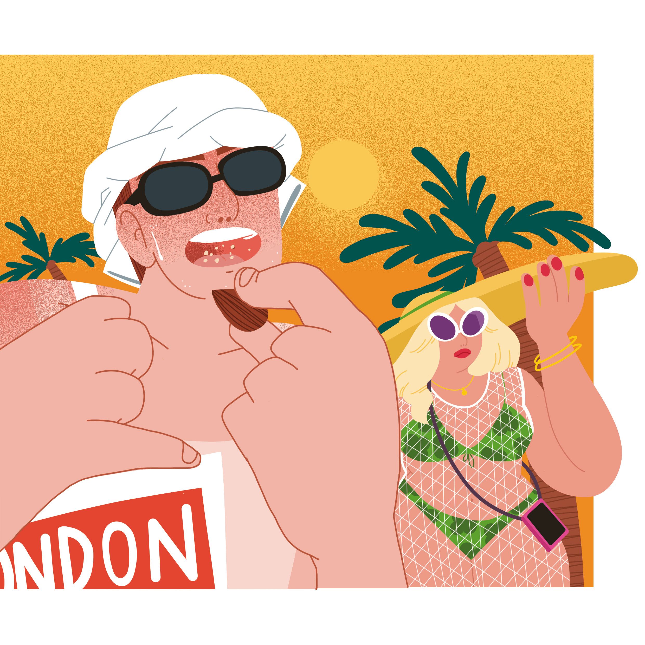Genie's ability to create playful and expressive characters works brilliantly with this project. The use of scale and vibrant colour captures the range of different types tourists on holiday from the all-day sunbather to the active adventurer.