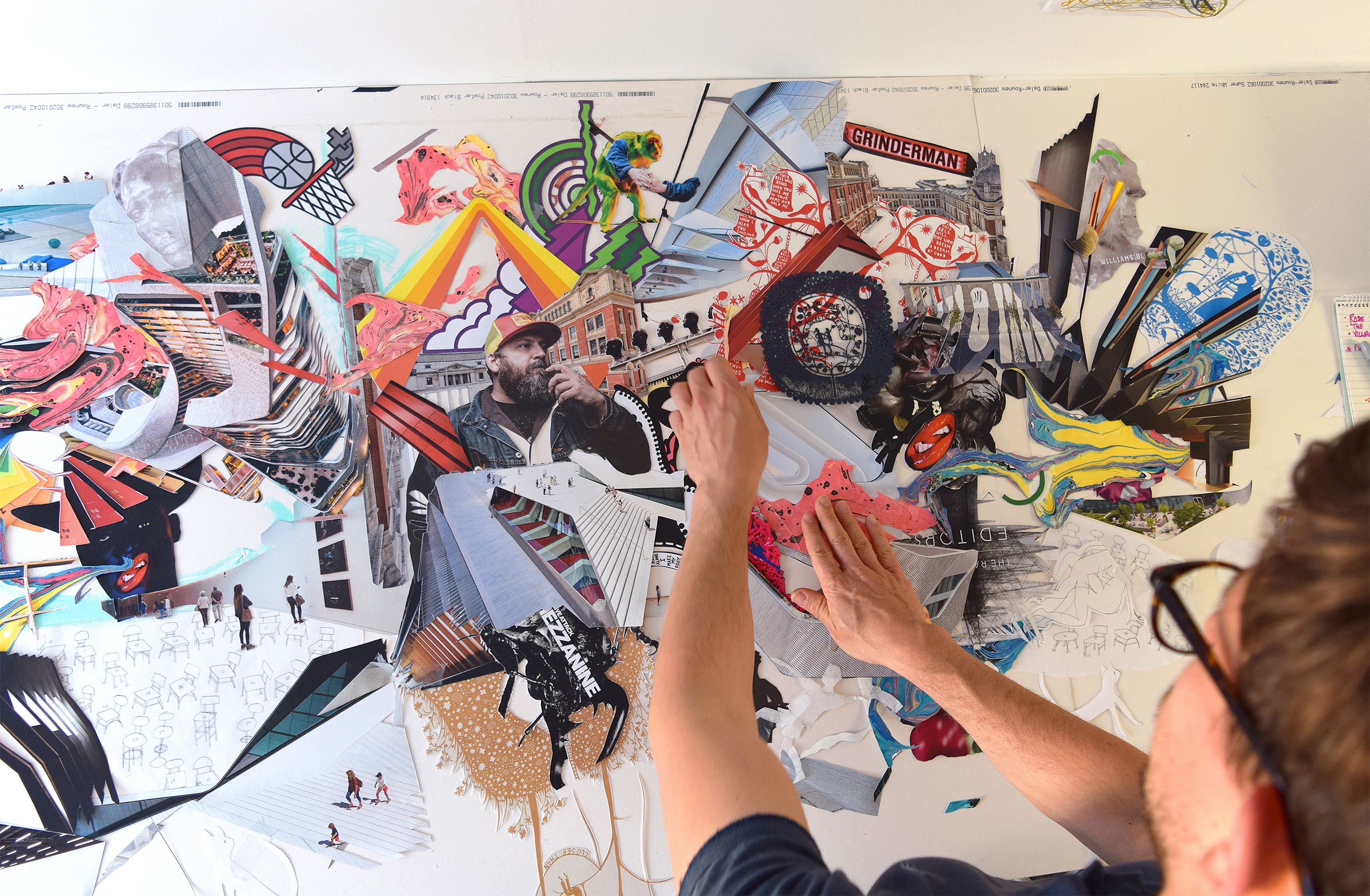 James created one large collage combining the work from all of the subjects of CR’s How I Got Here series of profiles which was then split across all three covers.