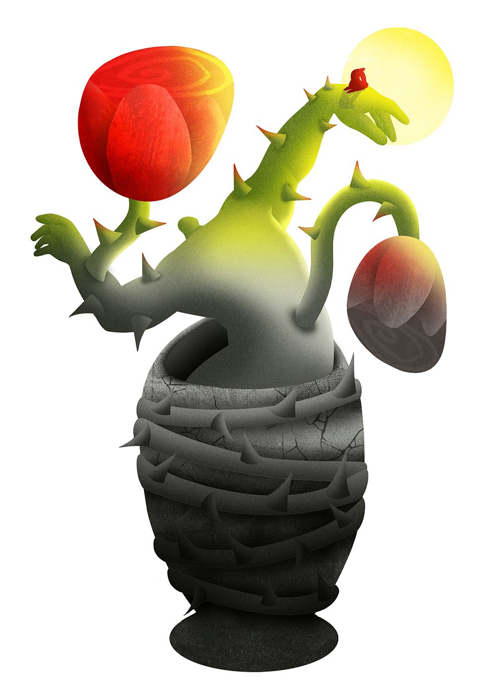 Through scaled up characters, Hayley is able to tell the stories of the three interviewees with sensitivity and an artistic nuance that depicts whole narratives within a single design. As someone who also lives with chronic pain, this project had a personal connection for Hayley who felt that they were able to approach this project with empathy and the care needed.