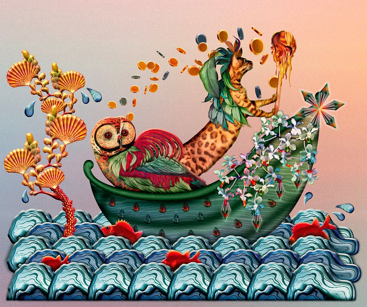The theme of the festive campaign is Edward Lear’s The Owl and the Pussycat and Mariana was tasked to lift the story from the page in a fun but refined manner. Her intricate illustrations were then turned into 3D layered installations which can be seen in the windows throughout David M Robinson’s UK wide stores.