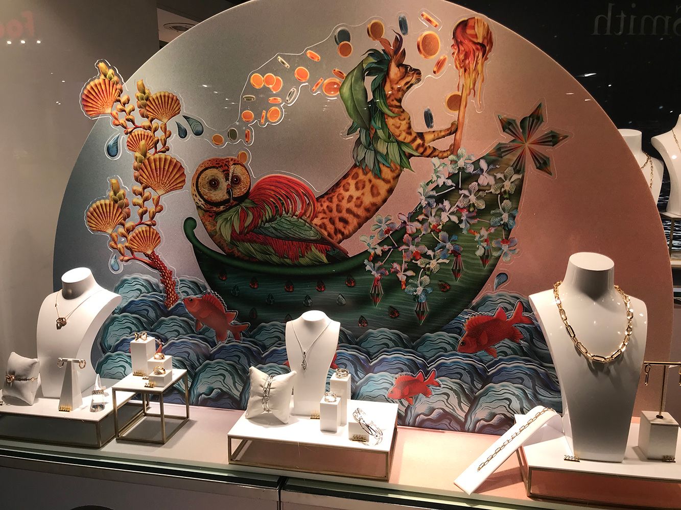 Luxury jewellers David M Robinson have commissioned Jelly’s Mariana Rodrigues to bring their Christmas window displays to life through her rich and magical illustration style.