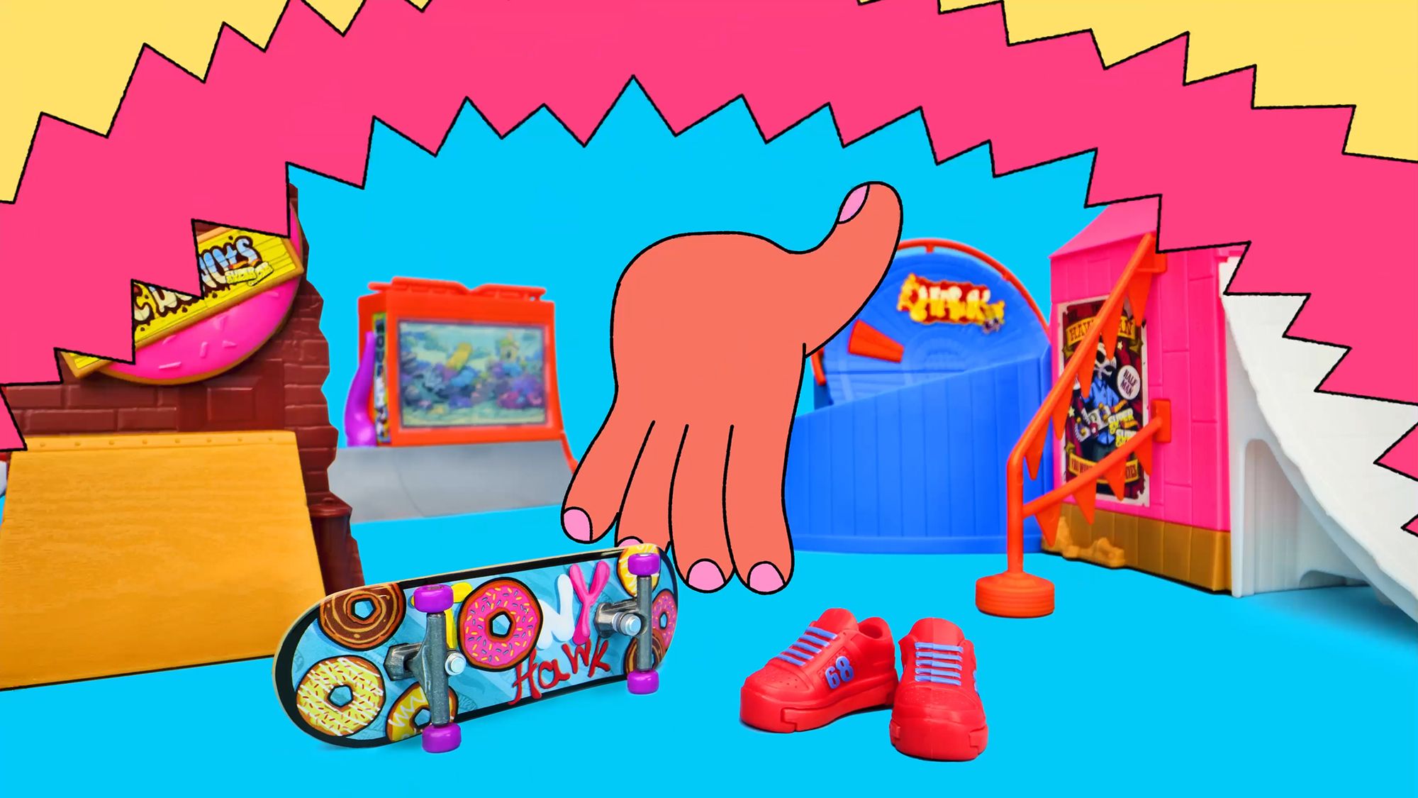 A playful animation for Mattel with Sunday Afternoon showcasing the Hot Wheels x Tony Hawk fingerboard skate sets. The collections include epic ramps, decks and skate shoes. Peter's love for skating translates into the dynamic animation, with fluid movements that imitate the real thing.