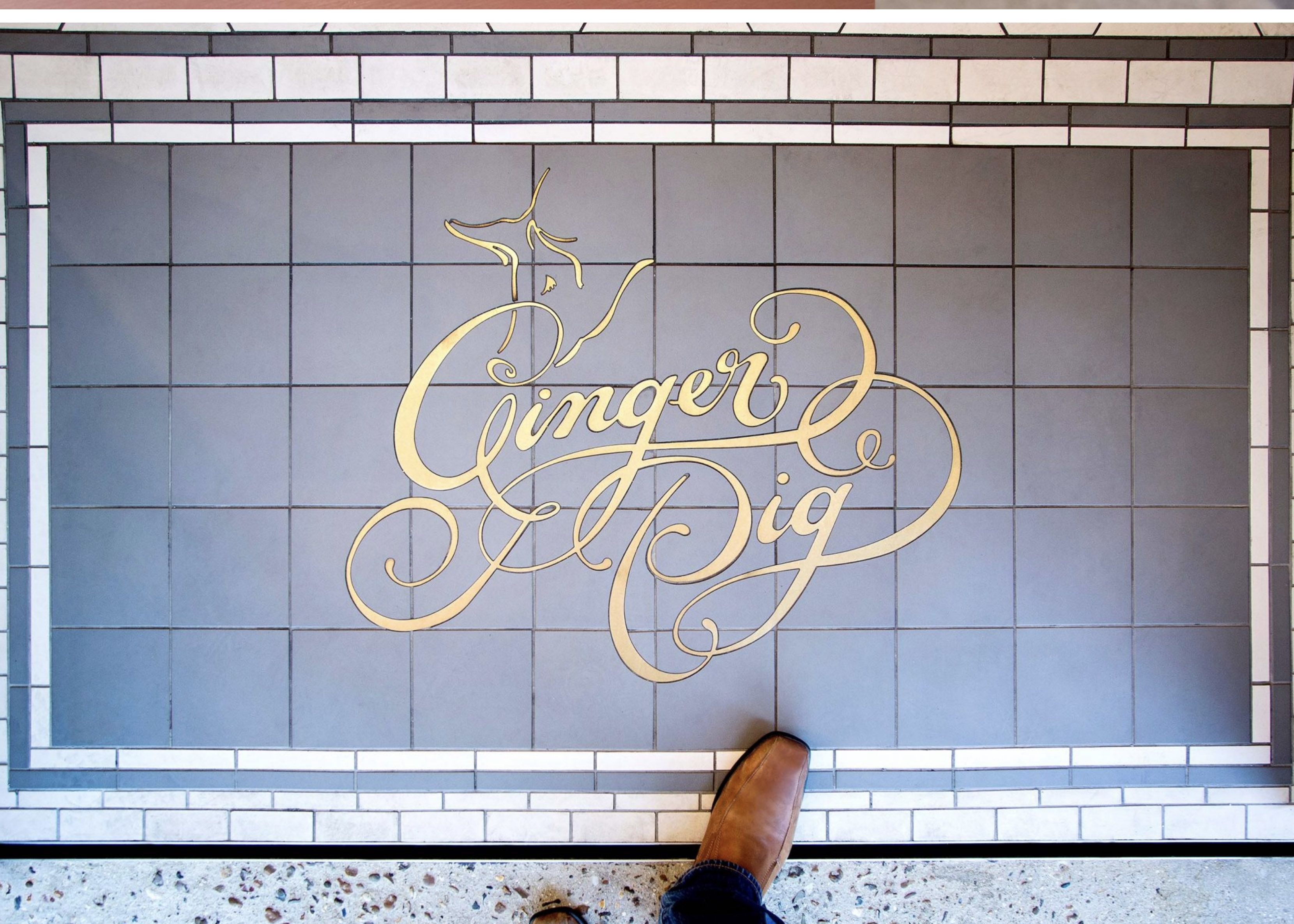Ginger Pig, Traditional farmers and butchers own eight shops across the UK, and specialise in amazing sausage rolls and butchery classes. Allies Design, who designed all their packaging and identity approached Alison to craft Ginger Pig’s main logo.