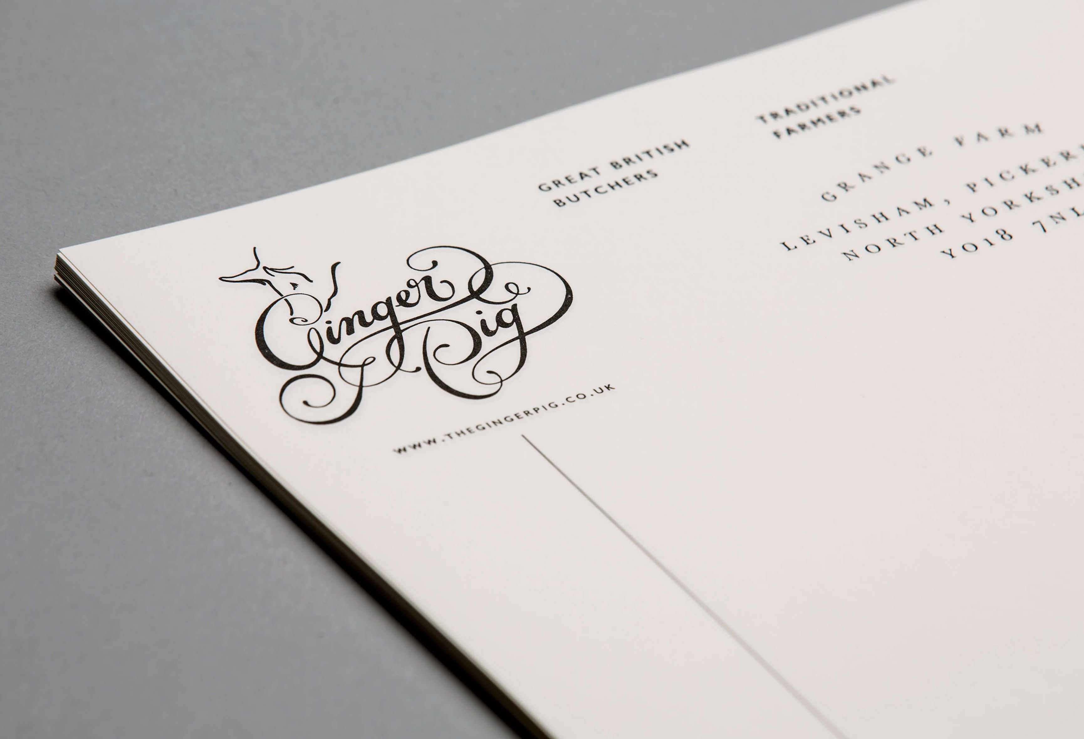 The finished identity reflects the craftsmanship and artisanal character of Ginger Pig. The logo is made up of bold strokes which reflect their full-bodied, rare breed animals and the flamboyance of owner, Tim Wilson.