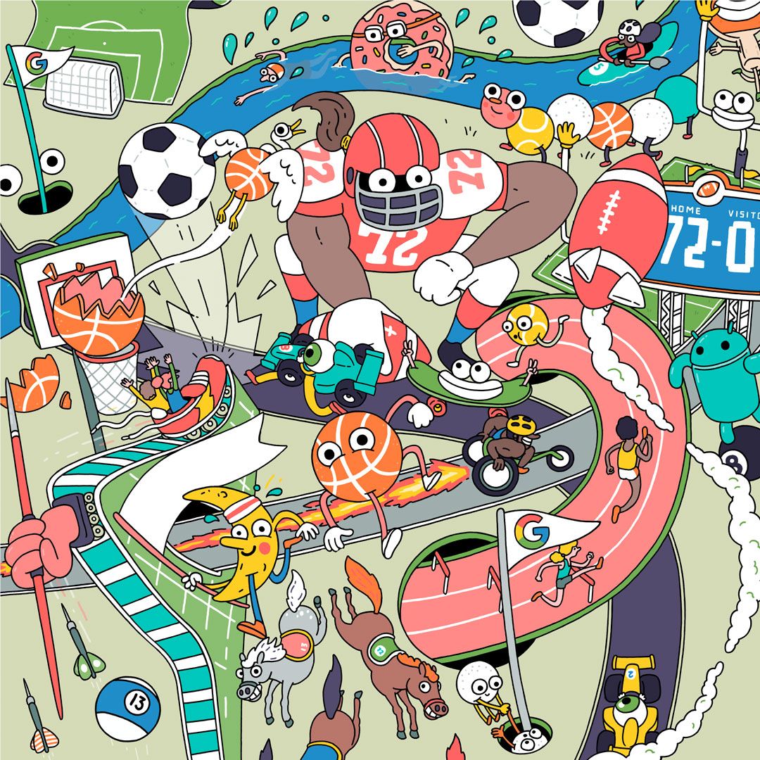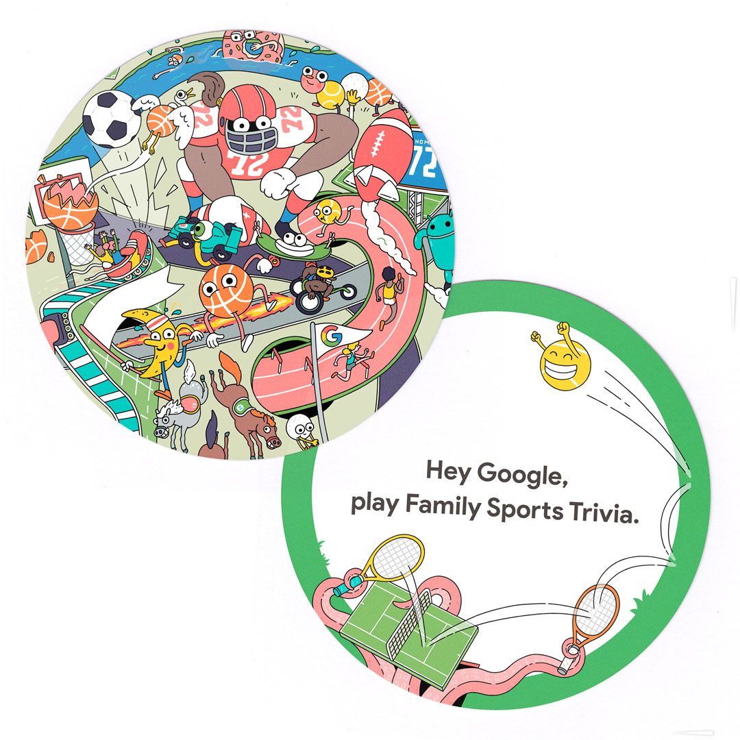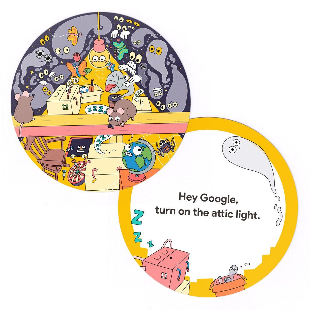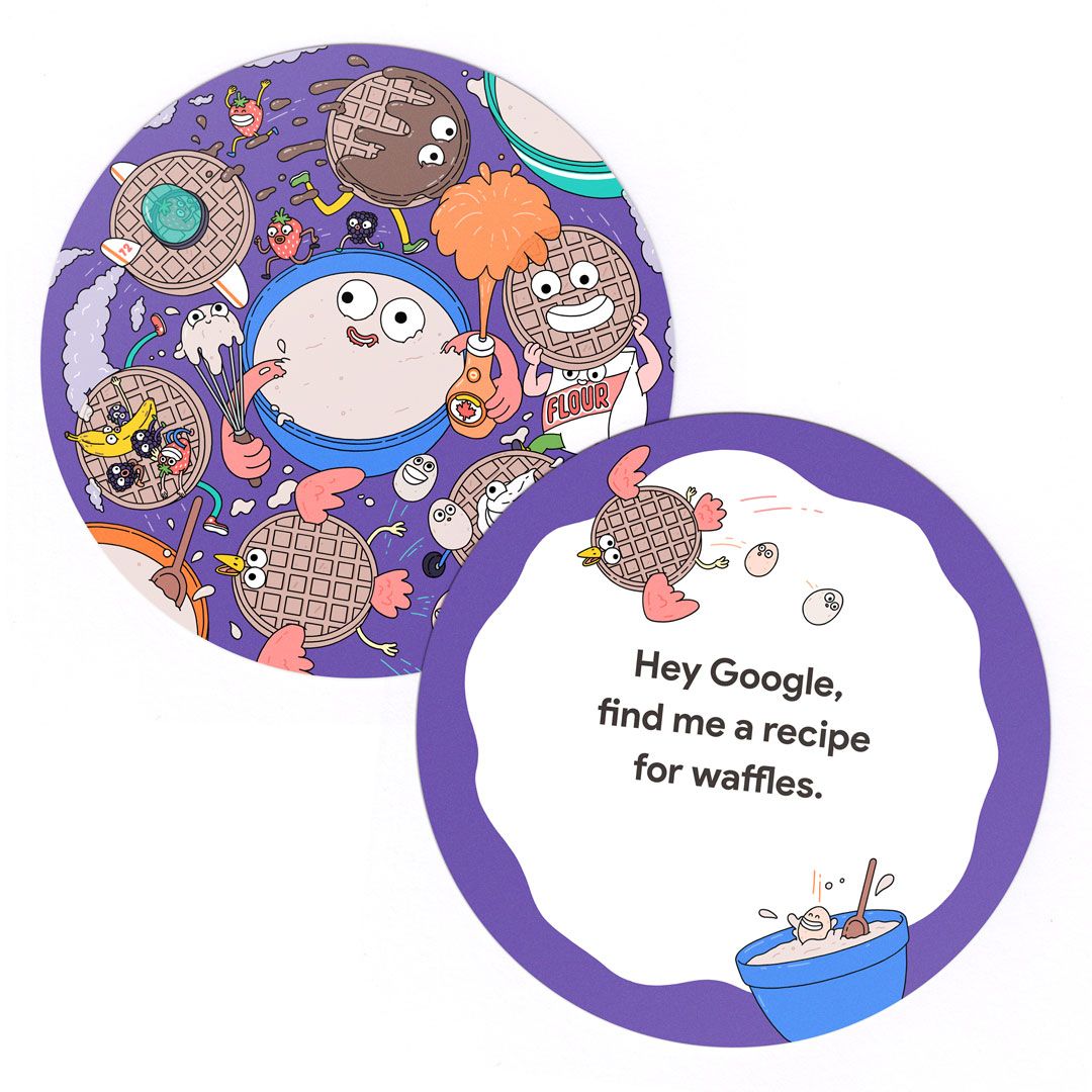 Damien was approached by 72andSunny with the task of bringing Google Home questions to life. He created a series of illustrations to be made into a deck of ‘Google Home Mini Cards’. Each card would contain a suggested question to ask Google on one side, with an illustration reflecting the question on the other side.