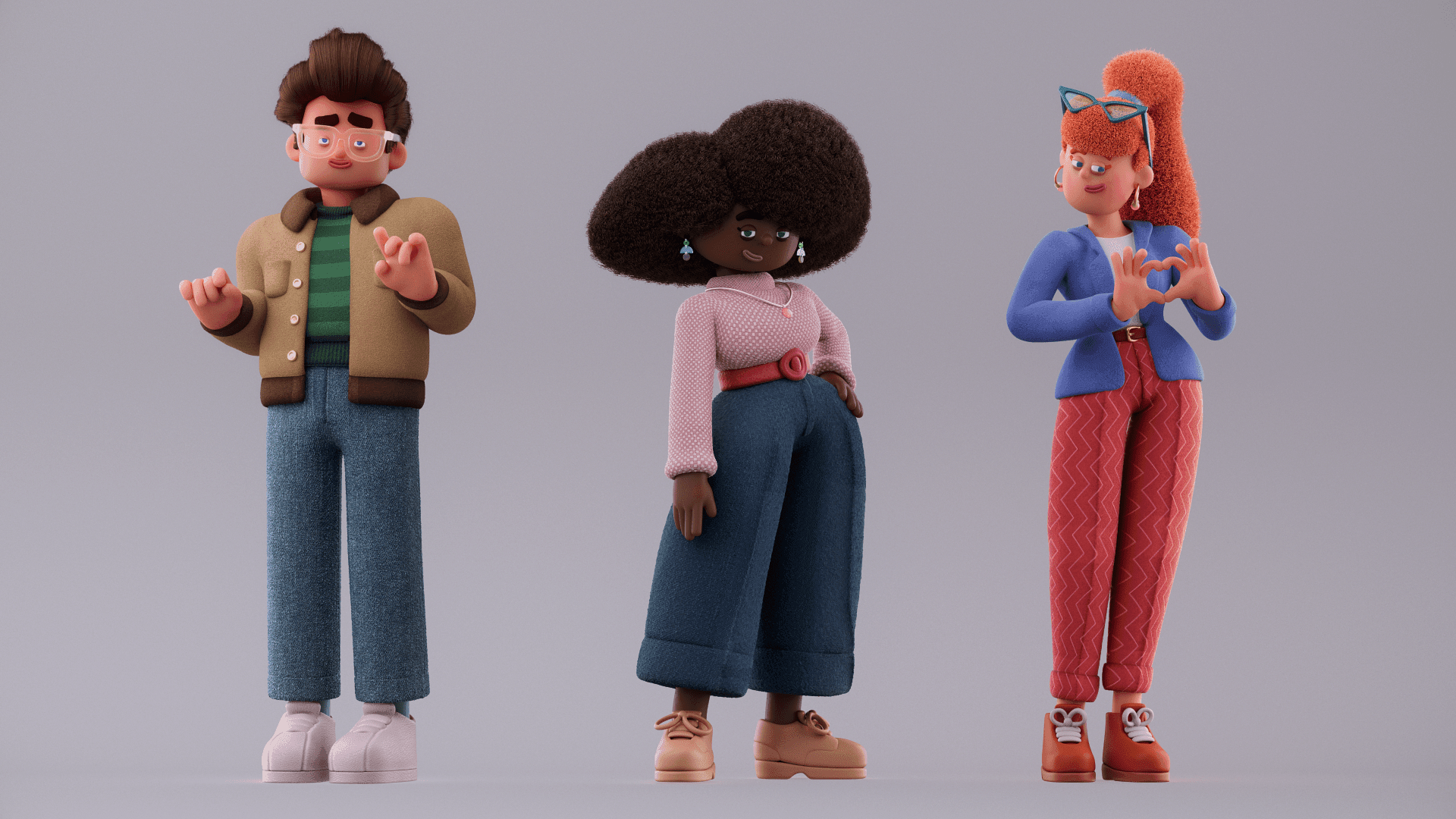 Quirky characters come to life in the HelloWork series where the three characters each have their own unique personalities and design, with bold and exaggerated movements.