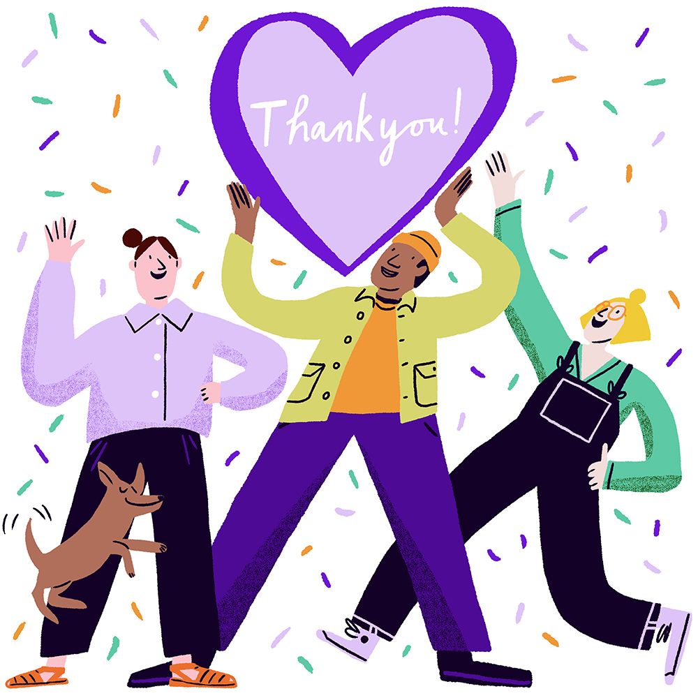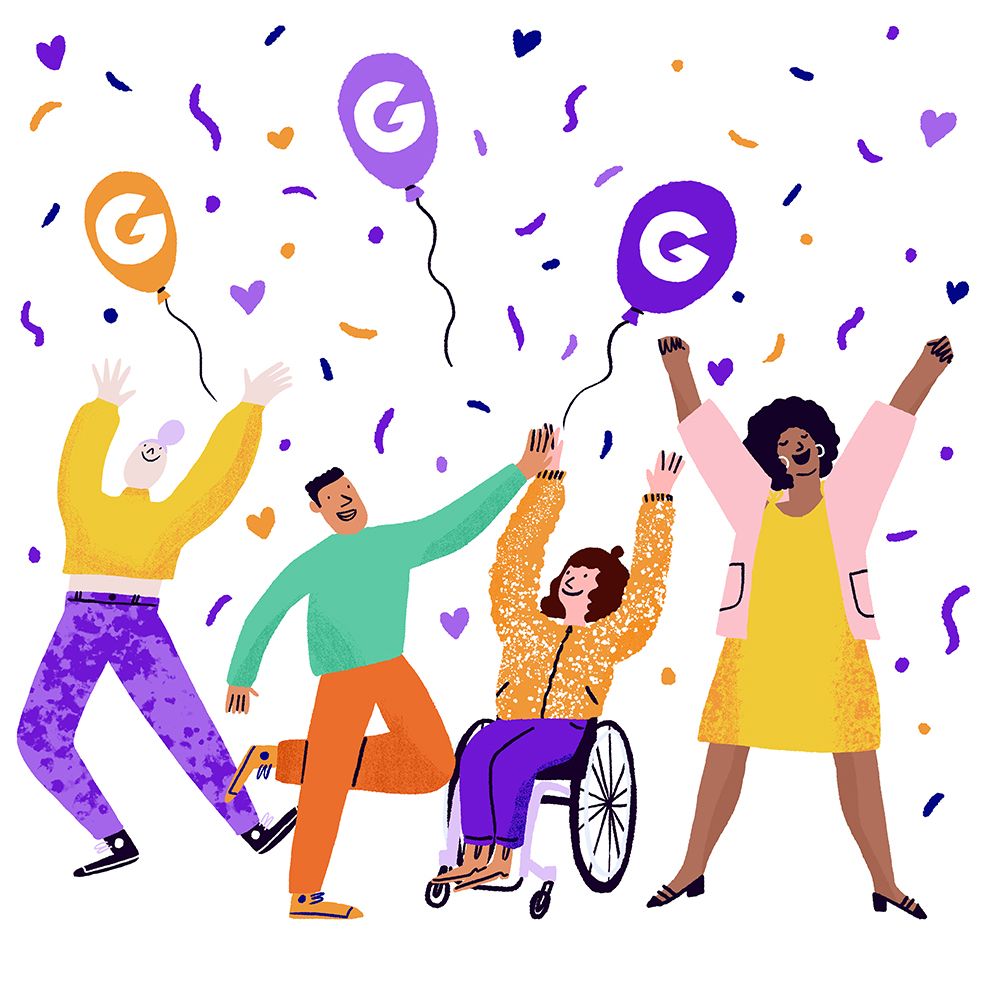 Hannah illustrated a library of assets for Just Giving to be used across their website, social media and email marketing campaigns. To set themselves apart from their competitors, Just Giving wanted a bespoke collection of imagery that was stylised but recognisable as belonging to the organisation.
