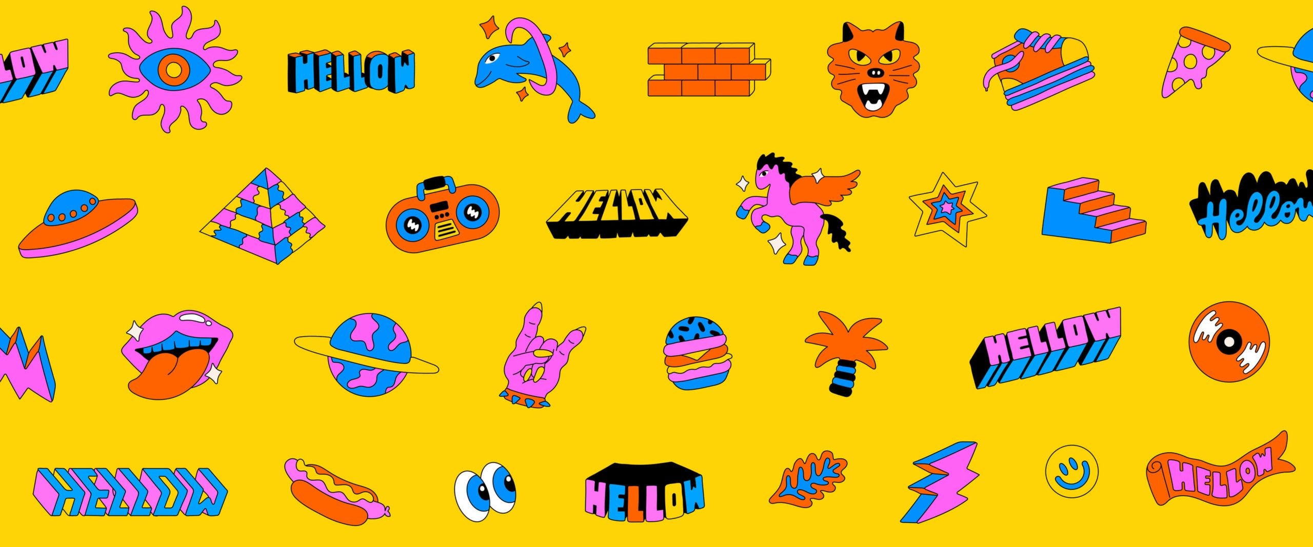 The Hellow Festival has become iconic amongst local and national Latin American culture, so Lebassis created illustrations inspired by symbolic elements. Including music, food and being with friends to express the brands personality. Through this, a new look and feel was generated organically with a series of letterings, using; the festival name, patterns and characters that represent the diversity of the people who attend the annual festival.