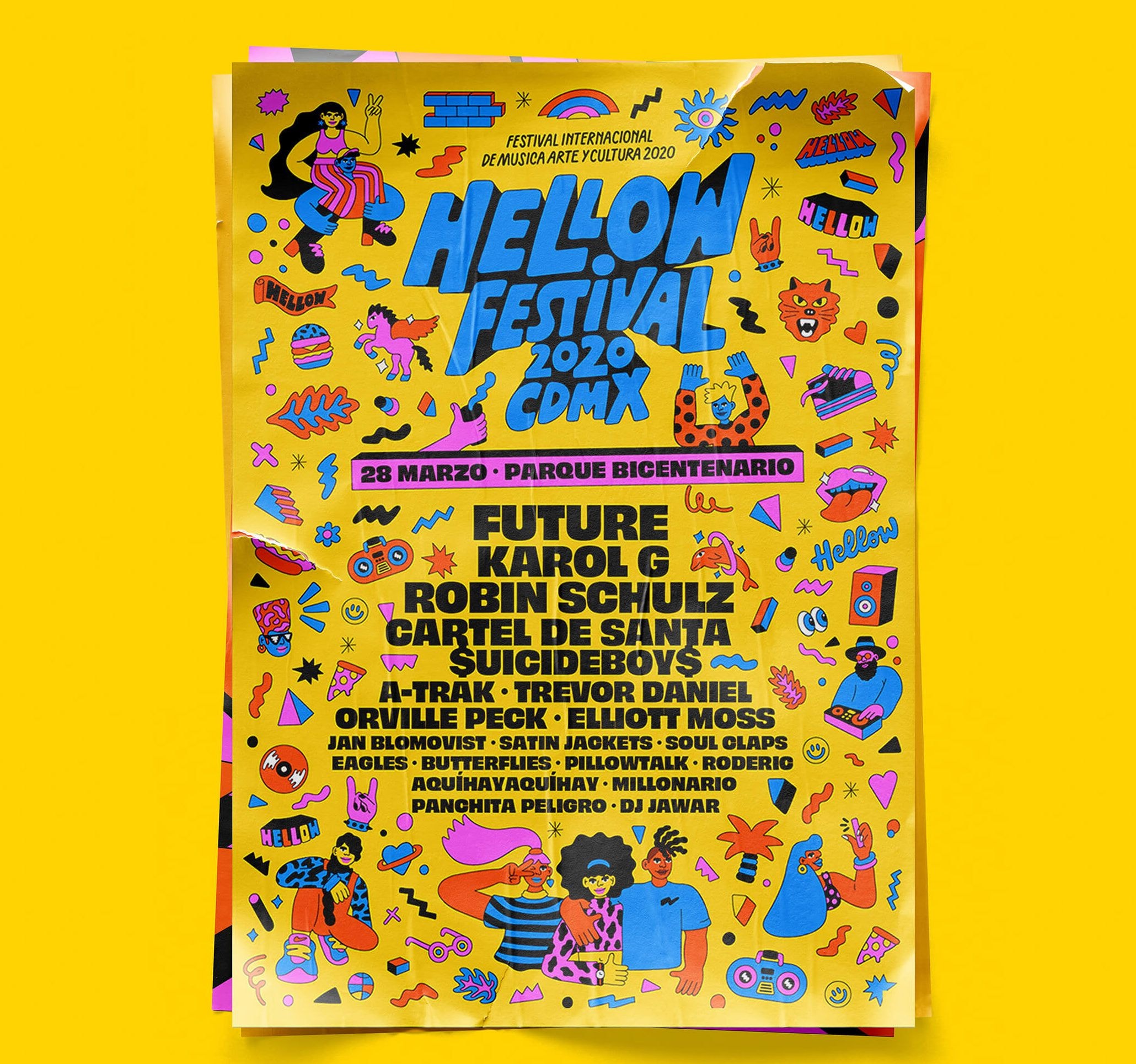 Lebassis created the look and feel and illustrations for the Hellow Festival, created in Monterrey to connect Mexicans through music.
