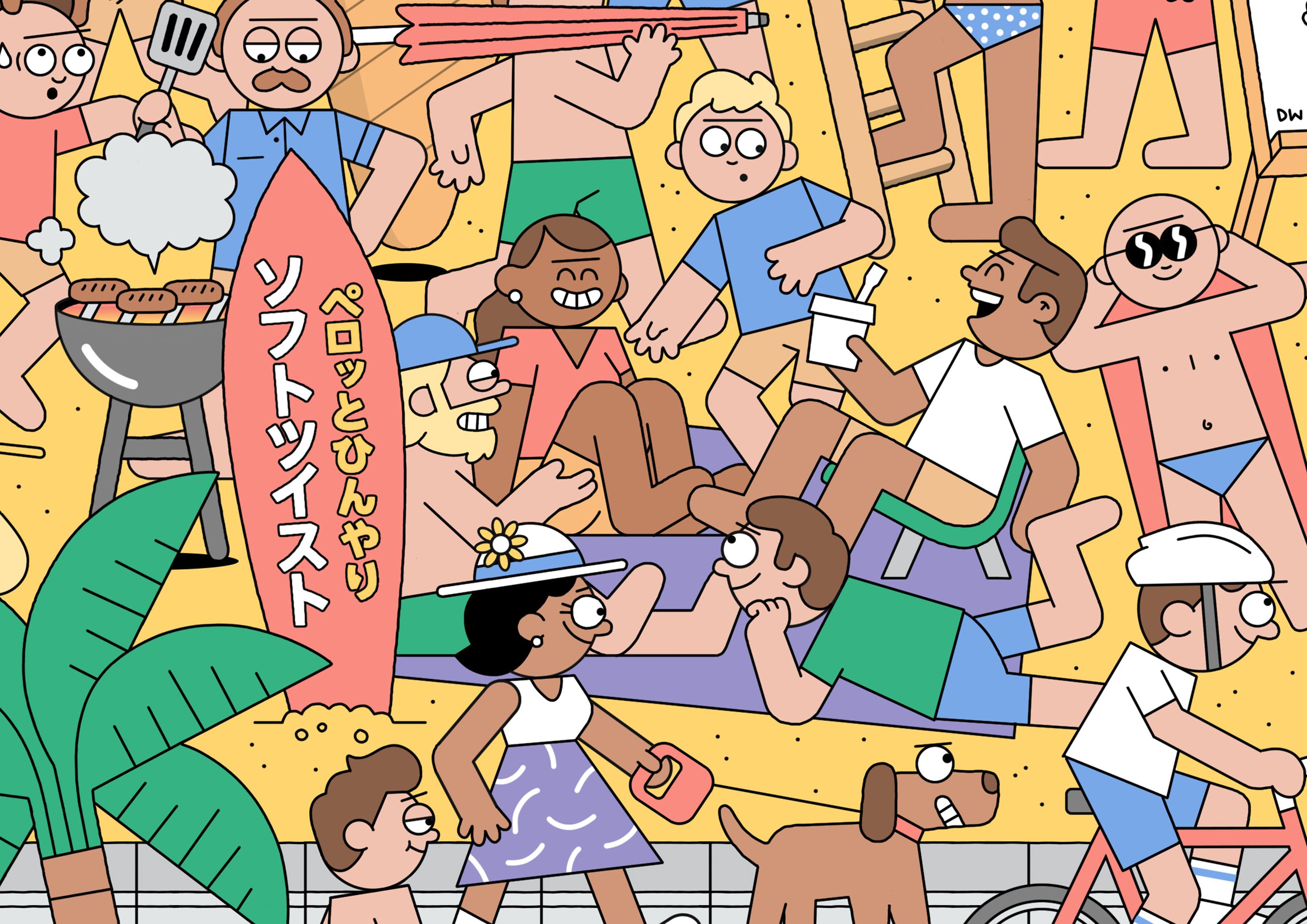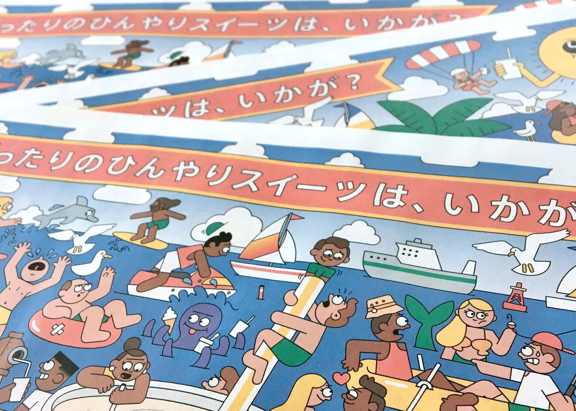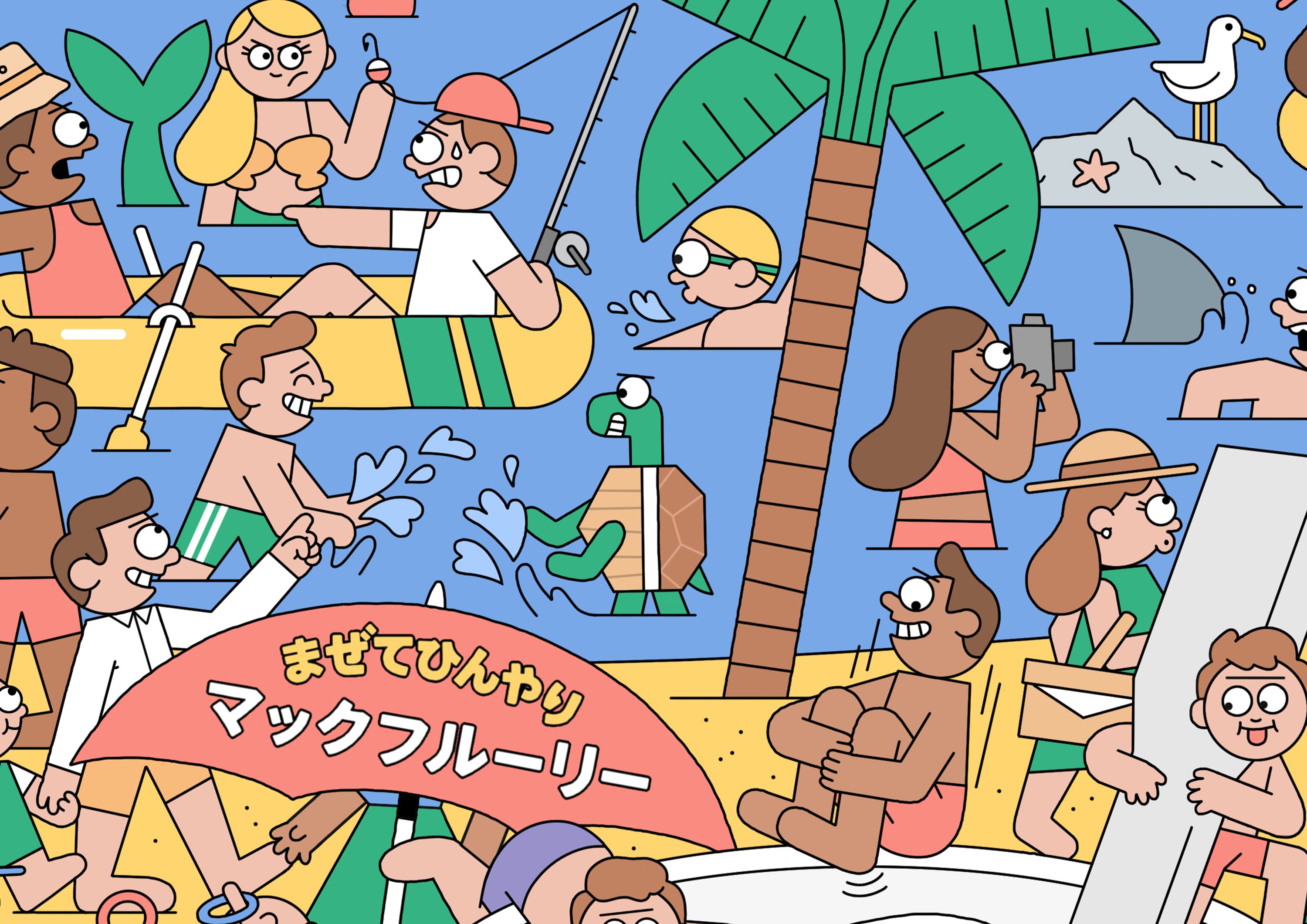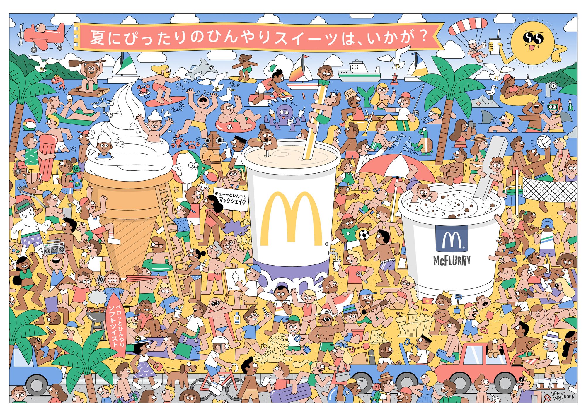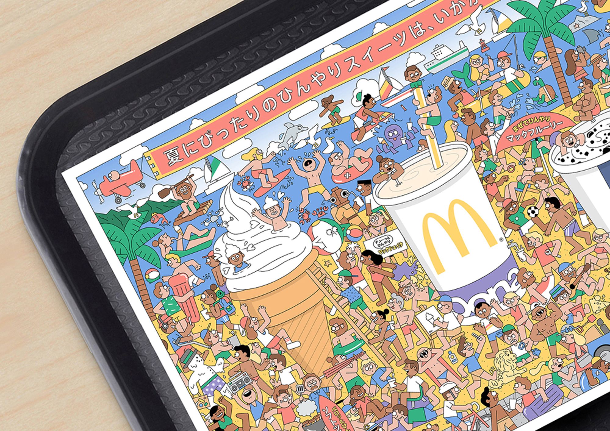Dan Woodger was commissioned by TBWA Japan to illustrate a tray mat for McDonald’s Japan to celebrate summer and promote the sweet treats range.
