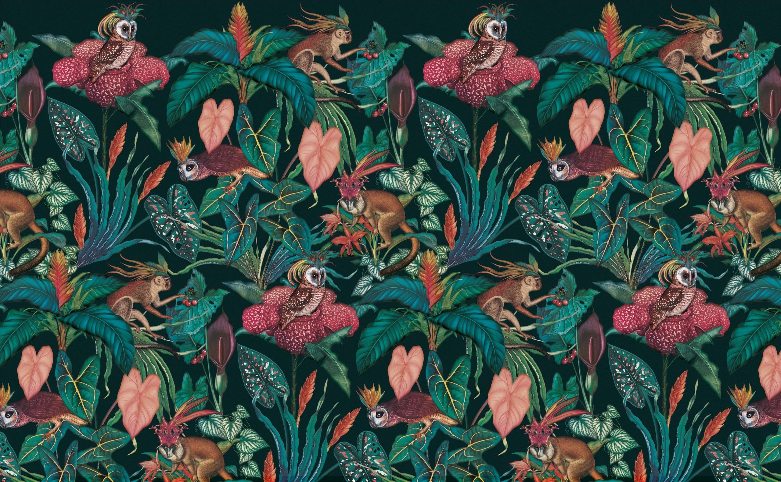 Mariana created three designs bursting with tropical plants and exotic animals, the rich colours transporting you to a vibrant location away from busy central London.