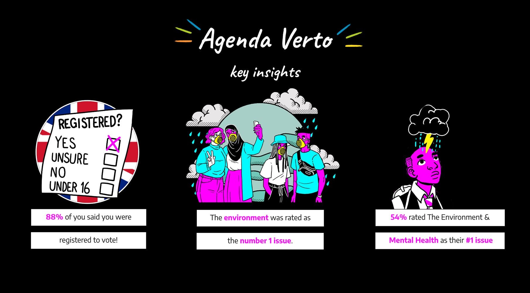 22 Thousand student-aged young voters engaged with the Verto App during the election campaign. A staggering 88% of the players completed the game. From this engagement it was possible for Bite The Ballot to get valuable insight into the issues that were on the minds of young voters, including their attitudes to: the political class, mental health, finance, education, the environment and their local community.